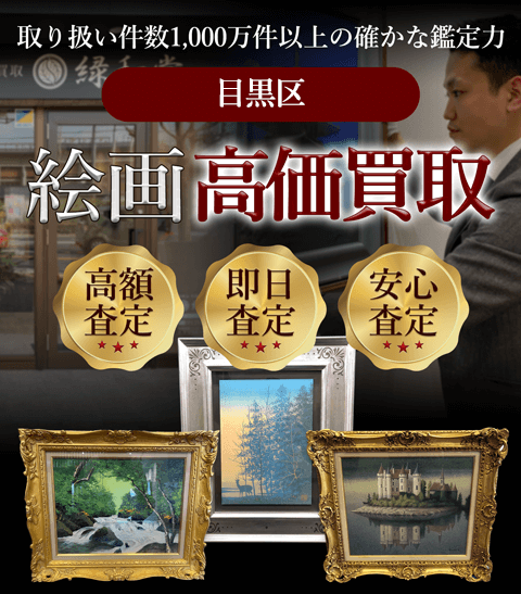 緑和堂は絵画買取専門店として東京都目黒区(自由が丘・目黒本町・目黒など)に出張買取を致しております。絵画専門鑑定士が在籍をしてますので、日本画・洋画・現代アート・版画・浮世絵等を適正査定、他店に負けない買取価格のご提示致します。