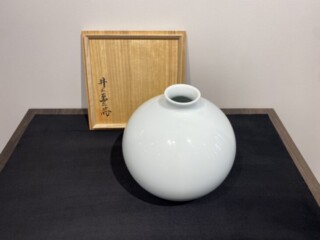 井上萬二は有田焼の作家であり、「白磁」の人間国宝としても有名で、井上萬二が作る白磁の白さは優しく降り積もった雪のようだと表現されます。今回の作品はまさに井上萬二らしい作品「白磁」の人間国宝としての傑作と言えるでしょう。