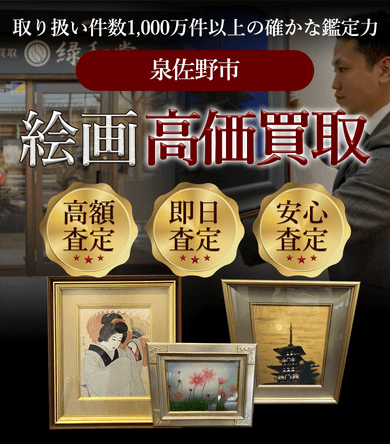 大阪府泉佐野市(羽倉崎上町・松原・中庄など)にて絵画買取専門店をご利用されるなら緑和堂へ。絵画の豊富な知識を持つ専門鑑定士が在籍をしており、日本画や洋画、版画から現代アートを適切な査定し、他では真似できない買取価格をご提示できます。