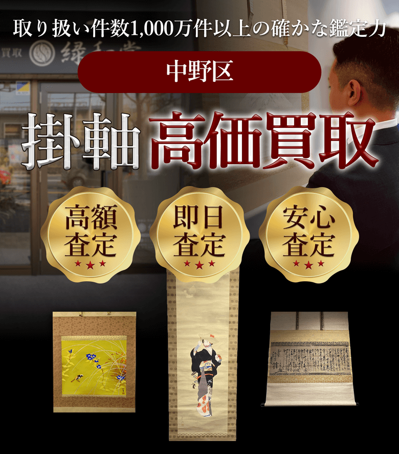 確かな鑑定眼を持つ鑑定士が幅広いジャンルの掛軸を高く評価させていただきます。