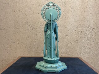 今回のお品物『ブロンズ 観音像』は、松久宗琳が作成された原型を元に制作された観世音像でございます。細かな施しにふんわりとした表情、お品物自体の存在感がとても魅力的な作品です。多少の汚れはありましたが、破損等など目立つ傷は無い状態でした。専用の付属品が今回無かった為、上記の評価額となっております。