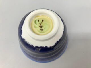 こちらの『ぐい呑』も、藍色に近い青や緑のグラデーションが作り出す模様と透明感のある色調が大変美しい作品となっております。