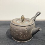 今回ご紹介の大國寿郎 作『急須』は漢詩をあしらったものです。鉄瓶の側面に漢詩が刻まれており、全体の主役となっています。本体の裏には「大國」の文字が見えます。全体を通して品のある作りと言えるでしょう。