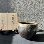 今回お譲りいただきましたお品物はこちら、伊勢崎晃一朗 作『黒茶盌』でございます。