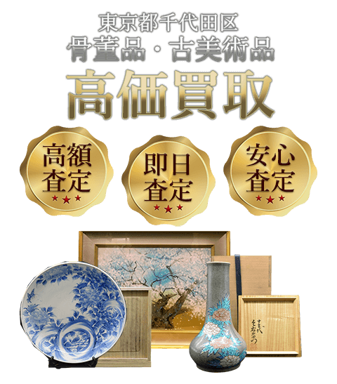 - 問題なく査定できます。千代田区で古美術品買取りの経験豊富な鑑定士が、しっかりじっくり鑑定して、相場に基づいて買取額をご提示致します。当店ではインターネット上に過去の買取品事例を載せておりますので、ぜひご参考になさってください。