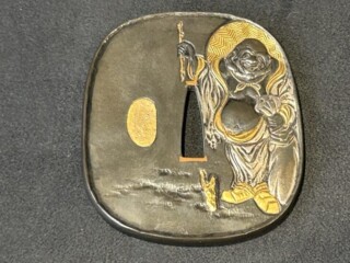 海野盛寿 『布袋 鍔』投稿日: 2025年6月6日公開作家名-作品名鍔買取方法宅配買取ご依頼地域埼玉県和光市買取参考価格 50,000円※買い取り価格は当日の価格であり、その価格を保証するものではありませんので予め御了承下さい。※状態や付属品の有無、買い取り方法などによって価格が変動いたします。この査定金額になった理由海野盛寿は、明治時代の彫金家です。 幕末の常陸国(現在の茨城県)に生まれ、上京後に玉川美久に学びました。本作は、刀装具の一つである鍔の作品です。 鍔(つば)は、日本刀の柄と刀身の間にある金具で、手を護るために用いられます。装飾性も高く、武士の身分や美的感覚を表現する工芸品としても重要な役割を果たしました。本作でも「布袋」が彫刻されており、装飾性が強調されております。今回のお品物は、作家とモチーフの人気に加え状態を考慮し今回の評価となりました。埼玉県和光市で刀剣のご売却をお考えでしたらこちらもご覧ください。刀剣買取はこちら埼玉県の出張買取のご案内刀剣の最近の買取実績2025年10月28日関住正直 『打刀』2025年07月05日山本五十六元帥 海軍刀 模造刀2025年06月06日宗義 銘『鍔』2025年04月07日天光堂秀国 『大小鍔 風神雷神之圖』2025年01月19日丹波守古道 『脇差』2024年12月28日藤原汎隆 『打刀』 特別保存刀剣査定・鑑定料、出張費すべて無料お気軽にご来店・ご相談下さい。他店でご満足できる値段がつかなかったお品、価値があるかわからないお品など確かな鑑定眼を持つ鑑定士がご評価させていただきます。