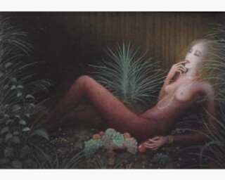 本作『フルーティな夜』は、裸婦を描いた幻想的な油彩画作品です。