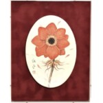 本作『鮮やかに香る』は、楕円のキャンバスに一輪の花が描かれた作品です。2024年に描かれた作品であり、鮮やかな線と色彩が作家らしさを感じさせます。