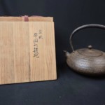 今回のお品物は「泉紋」という横線の文様を施した布団形鉄瓶です。一見すると布団のようには見えませんが、これは座布団の形を模したものとなっています。経年による変色などはありますが、箱の状態もよく、付属品も揃っていることからこの評価となりました。