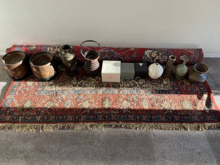 | 作品名 | パキスタン産手織り絨毯・竹籠・花瓶等陶器 |