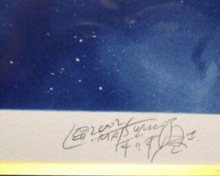 今回の作品『スターシャ』 シルクスクリーンは、華やかで優雅さを感じつつも、奥深さを持ち合わせている深い青色が松本らしさを感じることができる宇宙を描いているのが特徴的です。作品本体がかなり良好であることを考慮し、上記評価額となりました。
