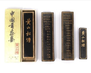 黄山松煙は、中国の名山「黄山」で作られる伝統的な松煙墨の一種です。松煙とは、松の木を燃やして採取した煤(すす)を主原料にした墨のことで、深く柔らかな黒色を特徴とします。