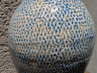 塩釉は、釉薬をかけず素焼きのまま焼成し、途中で窯内部に塩を投入する技法です。熱によって塩が気化することで、陶器に含まれるケイ酸と反応してケイ酸ナトリウムとなり、作品を覆います。ガラス質の独特のツヤは呉須と相性が良く、塩釉といえば青色のイメージを持たれる方も多いのではないでしょうか。