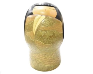 一般的なこけしとは異なり、素材感・彫刻性を重視した “創作こけし” を多く制作し、木目・木肌を活かした造形や、彫刻の立体感を重視する作風が特徴です。今作の花かすみは、その創作こけしの作品になります。