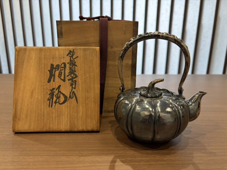 松栄堂 『純銀製南瓜 燗瓶』投稿日: 2026年1月16日公開作家名-作品名純銀製南瓜 燗瓶買取方法宅配買取ご依頼地域北海道札幌市買取参考価格 140,000円※買い取り価格は当日の価格であり、その価格を保証するものではありませんので予め御了承下さい。※状態や付属品の有無、買い取り方法などによって価格が変動いたします。この査定金額になった理由本作は、松栄堂の純銀製 燗瓶となります。燗瓶は伝統的な金属製の瓶状の容器です。主に日本酒を温めるのに使われます。 酒の温度を均一に保ちつつ、風味を損なうことなく温めることができるため重宝されています。また、酒の種類や好みに応じて適切な温度に調整できる点でも人気のある品です。本作では南瓜を模した丸みのあるフォルムに鎚目(つちめ)仕上げが施されており、銀の落ち着いた光沢と質感が美しい一品です。 こちらは昭和54年に製作されたようですが、小ぶりで比較的状態が良いことなどから上記の査定結果となりました。北海道札幌市で銀瓶のご売却をお考えでしたらこちらもご覧ください。銀瓶買取はこちら北海道の出張買取のご案内銀瓶の最近の買取実績2025年12月07日呉杉堂 『純銀霰湯沸』2025年07月17日青鳳 『純銀 湯沸』2024年10月25日竹影堂作 『純銀製 霰湯沸』2024年10月07日真鍋静良 『南鐐湯沸』2024年07月16日尚友堂造作『純銀 湯沸』2024年07月09日般若心経 純銀湯沸査定・鑑定料、出張費すべて無料お気軽にご来店・ご相談下さい。他店でご満足できる値段がつかなかったお品、価値があるかわからないお品など確かな鑑定眼を持つ鑑定士がご評価させていただきます。