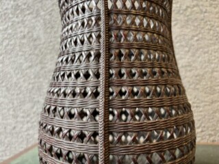本作の『竹花籠』は、細い竹を丁寧に編み上げたもので、竹のもつしなやかさと力強さが同時に表現されています。特筆すべきは、竹雲斎らしい細部まで行き届いた丁寧な編み方です。一つ一つの編み方が非常に美しく、竹雲斎の卓越した技術と芸術性が伝わってくる、そんな作品となっております。
