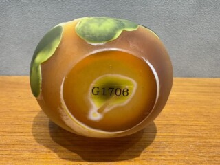 モチーフ表現や技法の完成度から、ガレらしさが色濃く感じられる非常に魅力的な作品ではございますが、サイズがやや小ぶりである点を考慮し、こちらの評価とさせていただきました。