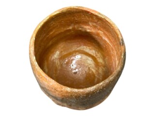 本作は、赤楽特有の鮮やかな焼成肌と、深く削り込まれた茶溜りが印象的な一碗で、寒中に手を包み込むような筒形の造形が、「冬ごもり」の銘にふさわしい侘びた趣を湛えています。