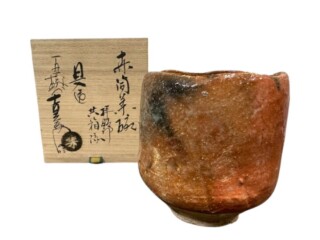 楽焼の伝統を踏まえながらも、旦入ならではの力強い造形美が存分に発揮された、代表作のひとつといえる作品です。