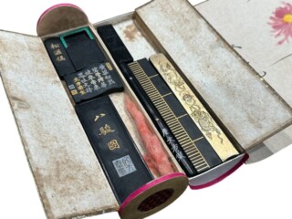 巻墨投稿日: 2026年1月13日公開作家名-作品名巻墨買取方法宅配買取ご依頼地域兵庫県神戸市西区買取参考価格 45,000円※買い取り価格は当日の価格であり、その価格を保証するものではありませんので予め御了承下さい。※状態や付属品の有無、買い取り方法などによって価格が変動いたします。この査定金額になった理由本作は、巻物の中に複数の唐墨(古墨)が収められた「巻墨」と呼ばれる品です。本紙には花と「癸亥 重九日(旧歴の9月9日)」の文字が描かれ、内部には装飾を施した美しい墨が丁寧に納められています。付属する墨の中に「文方齋」や「八駿図」などの意匠が施されていることから、清末〜民国期に上海で高級墨を多数制作した「文方齋」が手掛けた品と考えられます。さらに、「松滋候」や「黄粱初熟 碧管増華 蜨来香釆 鳳吐文誇」と詩が刻まれたものもあり、鑑賞性と実用性を兼ね備えた味わい深い一品となっています。また、「庚寅」の年の旧暦 9月9日に書かれたとみられる、墨に関する賛文のような書が付属されていました。製造元の活動期や墨の意匠、付属文書の記載などから、1890年頃に製作された品と考えられます。加えて、古墨としての価値の高さや状態の良さなどを考慮し、本作は上記の査定結果となりました。兵庫県神戸市西区で書道具のご売却をお考えでしたらこちらもご覧ください。書道具買取はこちら兵庫県の出張買取のご案内書道具の最近の買取実績2026年01月06日呉竹精昇堂製『抱雲』 3点2025年11月30日千寿墨 『白象』 呉竹精昇堂2025年11月30日書写紙 粉連2025年11月29日渡辺明泉 『花鳥文 堆朱硯箱』2025年11月11日呉竹精昇堂『千寿墨』2点2025年11月11日古墨『大好山水』唐墨査定・鑑定料、出張費すべて無料お気軽にご来店・ご相談下さい。他店でご満足できる値段がつかなかったお品、価値があるかわからないお品など確かな鑑定眼を持つ鑑定士がご評価させていただきます。