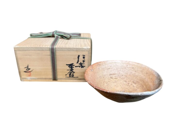 井村光男の信楽茶碗は、信楽特有の土味や釉薬の流れ、薪窯による炎の痕跡を活かしながら制作されたもので、伝統的な信楽のエッセンスを踏まえつつも、作者自身の感性が色濃く反映されています。抑制の利いた造形と、自然釉が生み出す豊かな表情が魅力です。