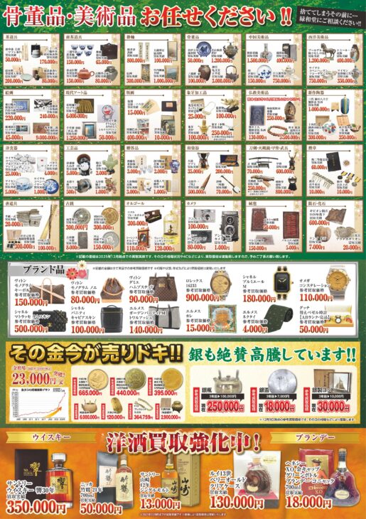 眠っている洋酒や掛軸などを是非この機会に持ち込むのは如何でしょうか?