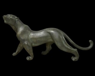 なかでも『豹』は、動物彫刻の代表的なモチーフの一つであり、しなやかな筋肉の張りや一瞬の緊張感、獲物を狙う静かな気配までを凝縮した秀作として評価されています。単なる写実にとどまらず、造形をわずかにデフォルメすることで本質を捉える手法は、津田永寿の真骨頂といえるでしょう。