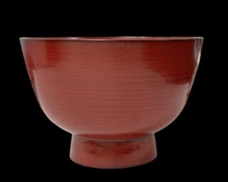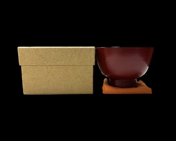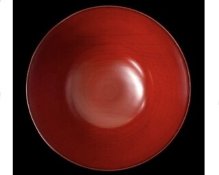 本品は、合鹿椀特有の大ぶりな器形を備えた朱漆塗の椀で、胴から口縁にかけてなだらかな曲線を描く造りとなっています。高台は低めに設けられ、全体として安定感のある形状です。表面には加飾を施さず、漆の質感を活かした無地仕上げとなっています。
