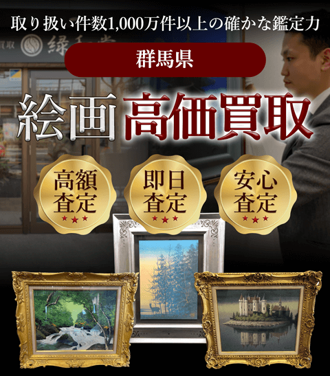 群馬県(前橋市・高崎市・太田市など)で絵画買取専門店をお探しでしたら緑和堂へ。絵画専門鑑定士が在籍しているので、日本画や洋画、版画や浮世絵、現代アートを適正査定、他店に引けを取らない買取価格のご提示致します。