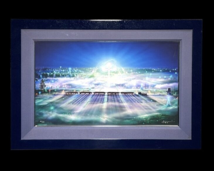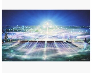 本作『サウザンクロス』は、タイトルにもある南十字星をテーマとした幻想的な作品です。画面中央から放たれる神秘的な光が大地を照らし、夜の風景を包み込むような壮大な構図が印象的です。放射状に広がる光の筋や、ブルーからグリーンへと移ろう繊細なグラデーションは、KAGAYAならではの透明感と奥行きを感じさせます。まるで星々のエネルギーが地上へ降り注いでいるかのような、幻想的な世界観が広がっています。