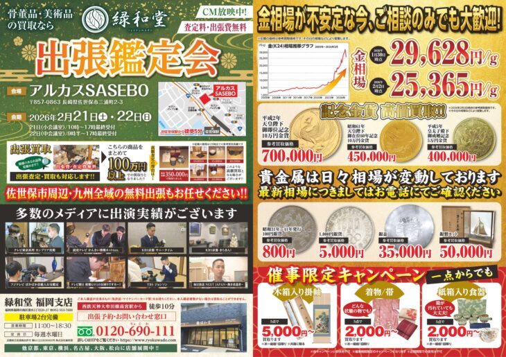 この度、長崎県佐世保市にて2日間の出張鑑定会を開催いたします。