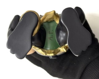 一般的に黒鬼は、他人や自分自身などを疑う意味を表しております。瀧下氏の『黒鬼 MOMOTARO ONI Figure』は、「疑心暗鬼」を表す雰囲気と迫力ある立ち姿の中にある可愛らしい桃がアクセントとなっております。調和を取るような愛くるしい姿をした本体の状態はかなり良好で、お品物を証明する保証書と専用箱も綺麗な状態でお持ち込み頂けました。保存状態、限定品であること等を考慮し、上記評価額となりました。
