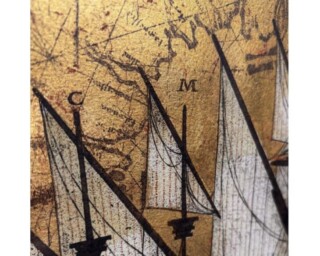 何層にも貼った金箔の剥がれからくる時間概念の抽出は、彼女の独特の感性を表現しており、そこに手彩色が施されて華やかさと時間の堆積を同時に感じ取ることができるでしょう。