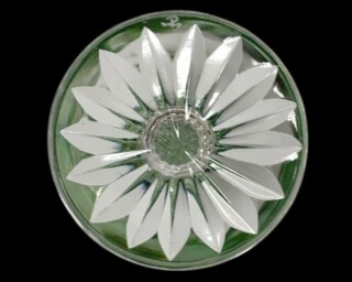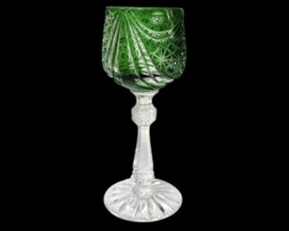 「ワイングラス(グリーン)」は、透明ガラスに色被せ(グリーン系クリスタル)を用い、その外層をカットして文様を浮かび上がらせる形式です。グリーンは江戸切子でも比較的視認性が高く、カットの陰影が出やすい色調で、光の屈折によるコントラストが強調される点が特徴です。