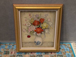 主にヨーロッパ美術から影響を受けており、シックで落ち着いた雰囲気の作品を中心的に描きます。また、国内の現代画家作品や文献にも目を通し、常日頃技術に磨きをかけていました。花や女性像、裸婦などを好んで描かれることが多く、奥深さを感じつつも優雅で儚さもある作品はどこか目が離せない、そんな服部氏ならではの存在感を感じられることでしょう。