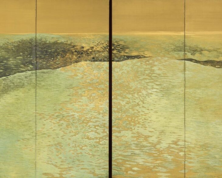 彼は伝統的な四条派の写実に根ざしつつも、波や自然の動きを題材にした斬新な表現と、装飾性の強い彩色を特徴としています。また、動植物や鳥類などのモチーフも作品にみられ、自然の生命感や躍動を画面構成の中で強調していると考えられます。