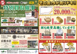 幅広買取の緑和堂より、取り扱いできるお品物の幅広さを知ってもらうために、買い取り金額を表示した広告を作成しました。 今までの広告と違い商品1点1点が小さいので、ちょっと目を凝らしてもらうことになりますが、過去最大級の買取 …
