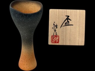 今回ご紹介させていただくお品物は、隠崎隆一作『黒酒呑』です。 隠崎隆一氏は現代陶芸家の中でも高い人気を誇る作家の一人で、自由で独自性のある表現を備前焼で追求していることで知られています。作品一つひとつに隠崎氏ならではの造 …