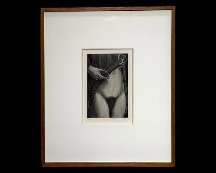 辻真砂は、精密な写実技法を用いて女性像や風景画を中心に描く、叙情性豊かな作風で知られる洋画家です。 本作品は、妖艶な雰囲気をまとった女性を描いた油彩画となります。 凛とした表情や背中の肉感表現が印象的で、丁寧な観察に基づ …