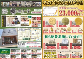 幅広買取の緑和堂より、取り扱いできるお品物の幅広さを知ってもらうために、買い取り金額を表示した広告を作成しました。 今までの広告と違い商品1点1点が小さいので、ちょっと目を凝らしてもらうことになりますが、過去最大級の買取 …