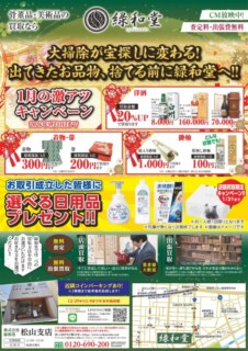 新年あけましておめでとうございます。 本年も緑和堂をどうぞよろしくお願いいたします。 さて、先月実施いたしました買取キャンペーンにつきまして、 多くのお客様よりご好評をいただいたため、期間を延長し、1月も引き続き実施する …