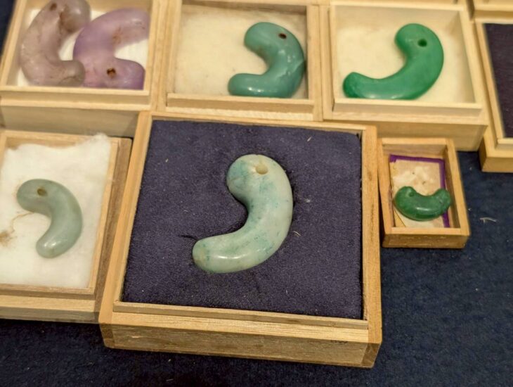 こちらのお品物は古墳時代の副葬品として埋葬・発掘されたものです。翡翠や水晶などが中心であるため地方の権力者の人物の副葬品だったのではないかと考えられます。